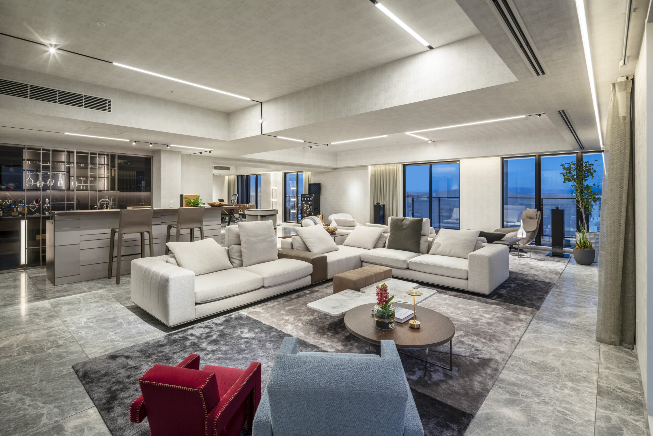 物件の引き渡し前に、4住戸を統合して広々とした居住空間を実現したいと考えています。メインのリビングやダイニングキッチンに加え、バーカウンターやジムスペース、セカンドキッチン、そして完全防音仕様のオーディオルームなどを取り入れた空間を希望します。